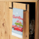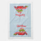 Toallas de cocina para Feliz Navidad, con un lindo ilustracion de un auto decorado festivamente con ramas de abeto y cajas de regalo en el techo.