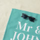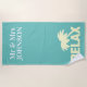 Toallas de playa de luna de miel para el Sr. y la Sra. recién casados. Elegante idea de regalo de boda para parejas recién casadas. Color de fondo Verde azulado azul o personalizado con gráfico de palmera. Sube tu propia imagen opcionalmente. Crea una para él y ella. Ideal para destinos bodas de verano, playa, piscina y más. Sus regalos y los suyos para el nuevo marido y la nueva esposa.