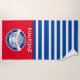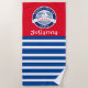 Las toallas de playa personalizadas son perfectas para las vacaciones de la playa de la familia o los viajes de la travesía de la familia. Las mejores vacaciones de la playa de la familia crean recuerdos de la familia. Ahórrelas con las toallas de playa personalizadas los niños y los adultos pueden guardar como recuerdo. Personalice con su apellido y fecha. Pida las toallas de playa frescas para cada uno en la familia. Toallas de playa rayadas rojas, blancas, y azules. Las toallas de playa adaptables con su destino preferido de la playa o del lago son ideas perfectas del regalo de la familia.
