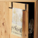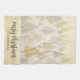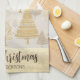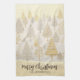 Elegantes árboles de Navidad dorados y plateados aparecen en un fondo blanco roto en este vintage diseño acuático para sus toallas de té de vacaciones. Hay un bonito borde de adornos dorados falsos. Puedes editar el saludo de "Feliz Navidad" o dejarlo. Asegúrese de editar el nombre de la familia de ejemplo o eliminarlo si no prefiere ninguno.