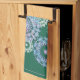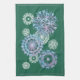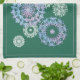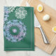 Hermosa toalla de cocina verde con una decoración moderna y luminosa - copos de nieve acuarela de invierno.