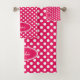 Rojo con toallas de polika blanco, cada toalla puede ser personalizada con su propio nombre y letra inicial, actualmente lee Sophie H. Diseño original de www.mylittleeden.com