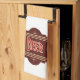 Logo de cerveza de estilo retro en un profundo color burganeso con texto gráfico.
