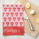 Un Navidad elegante y divertido Diseño de toallas de cocina con triángulos geométricos de inspiración retro. Este regalo de Navidades divertidos puede ser personalizado con un nombre, frase, monograma o su propio mensaje. Los colores son: verde, rojo, blanco, azul y rosa.