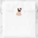Pegatinas redondos con el lindo, cariñoso y adorable cerdo Toby mostrando con orgullo su espíritu festivo con su sombrero de Papá Noel y su juguete de caña de caramelo.
