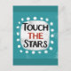 "Touch The Stars" es una bonita cita inspiradora o motivacional con una forma de acento blanco rodeada de puntos caprichosos de textura blanca.