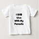 ¡Las camisetas y los monos infantiles del humor con diseño negro del texto me leen "todavía viven con mis padres"! ¡No es así que divertido ver esta frase en crecida, sino que es divertida bonito en una camiseta del bebé o del niño!