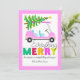 ¿Arrojando la nieve en tu vintage camión rojo con un árbol de Navidad? ¡De ninguna manera! Las cálidas brisas de tu carrito de golf son la manera de ir. Celebrando una brillante temporada de fiestas tropicales, esta tarjeta Todo Feliz Navidad es para todos en las tierras cálidas. Con un divertido carrito de golf rosa con un árbol de Navidad en el tejado y personalizado con el nombre de su familia, esta tarjeta es perfecta para aquellos que disfrutan de nuevas tradiciones.