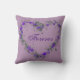 Una almohada de tiro dulce de la tipografía con el texto púrpura en un lado que dice a "todo el mí los amores usted" y un corazón floral bonito con las flores púrpuras y la palabra "para siempre" en el lado opuesto. © 2015 - SmudgeArt/Madeline M Allen