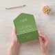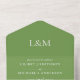 Foliage Green (código de color #769F51) y tipografía blanca, sólo texto, monogramado, minimalista, simple invitación a la boda, que incluye una postal rsvp desgarradora (3 en 1 según las imágenes). El elemento incluye la dirección del remitente, una dirección de devolución y campos de plantilla de texto para la ceremonia del boda y la recepción según desee (edite el texto para adaptarlo a sus necesidades específicas). También puede añadir iniciales de parejas, monograma. Invitación moderna y elegante, económica y acorde a sus necesidades.