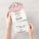 Celebra tu amor en un estilo atemporal con esta elegante invitación a la boda, con un romántico diseño floral en suaves tonos rosas y un hermoso marco de fotos con acento dorado. La tarjeta RSVP le facilita las respuestas, mientras que los delicados detalles florales le dan un toque elegante a su invitación especial. Ideal para los bodas clásicos, de jardín o románticos. Personalizable completo para su nombre, fecha y ubicación.