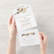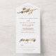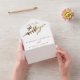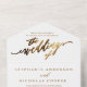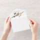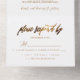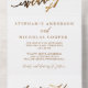 Una hermosa invitación a la boda con un elegante diseño de escritura en oro.