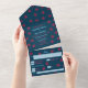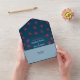 Esta invitación a la boda le da el fresco y fresco sentimiento de caída y le ahorra tiempo al ser una invitación todo en uno. Presenta un diseño japonés de hojas de arce sobre fondo marino. Esto también funcionaría para una pareja que ama Japón pero quiere mostrarlo de una manera sutil, ¡sobre todo si se casaban en otoño!