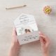 ¡Estas invitaciones de boda únicas están bellamente impresas y son fáciles de usar! Simplemente añada un sello a la tarjeta postal RSVP, para que tus invitados puedan completar fácilmente la información de RSVP, desgarrarte y enviarle un correo de vuelta. Para enviar por correo, simplemente puede doblar, sellar (usando uno de los pegatinas claros incluidos), dirección y correo! ¡A tus invitados les encantará lo fácil que es llenar su RSVP, desgarrar y enviar correos! Vea toda la colección Eucalyptus Greenery para ver más elementos coincidentes.