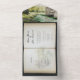 Este bonito diseño boda de estilo vintage cuenta con una pintura vintage de un castillo a orillas del río, tanto como ilustracion en el RSVP desmontable como con un hermoso paisaje de arena. El guión elegante se inclina en la belleza del cuento de hadas, creando una memorable y una de una amable invitación a una boda.