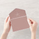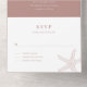 El diseño de esta invitación a la boda es una mezcla perfecta de elegancia y de ambiente de playa. El principal atractivo de la invitación es un pequeño motivo de estrella blanca que se sitúa en el centro del fondo de color terracota. El motivo de la estrella de mar está diseñado de forma compleja y le da un toque natural a la invitación. El color de la terracota del fondo es cálido y acogedor y da un toque de color a un boda de tierra. La tipografía utilizada en este diseño de invitación es blanca clásica, lo que añade un toque de sofisticación y asegura que el texto sea fácil de leer. El estilo de letra utilizado es limpio y moderno, creando un aspecto atemporal que nunca se desvanecerá.
