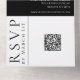Elegancia y comodidad con nuestra invitación a la boda blanca y negra moderna, con un monograma personalizado. Este diseño todo en uno incluye un código QR de personalizable para RSVP en línea. Simplifique los preparativos de su boda y, al mismo tiempo, deje una impresión duradera a sus huéspedes. Aprovecha el romanticismo moderno con esta invitación moderna.
