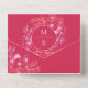 Esta vibrante invitación a la boda se caracteriza por un romántico fondo magenta con ilustraciones florales de color rosa y un moderno círculo de monogramas. Una tarjeta postal RSVP desmontable facilita la respuesta de los huéspedes. En la parte trasera hay una gran sección de fotos personalizada. Nota: Esta invitación no es un sobre y requerirá un sobre A9 separado (5.75" x 8.75") para el envío por correo. La dirección de retorno de la parte trasera está impresa en la tarjeta RSVP para su comodidad. Una combinación perfecta de estilo audaz y encanto romántico para bodas de verano o de destino.
