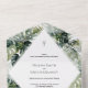 Simplifique su papelería boda con esta invitación tropical completa. Con exuberantes hojas botánicas, es perfecto para una boda de destino. Este diseño combina todos los detalles de su boda en una hermosa pieza cohesiva.