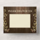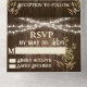 Elegante fondo de madera oscura rodeado de hojas y luces fiestas colgantes. Esta invitación incluye la información del boda y la tarjeta postal RSVP que sus invitados desgarran y envían. No se necesitan sobres. Ideal para un verano, otoño, primavera, boho o boda al aire libre.
