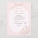 Invitación de baby shower en cuadros rosas con tema de ganso tonto en un diseño todo en uno. Diseñada para celebrar un encantador baby shower de niña con un ambiente de cuento de hadas divertido. Ideal para celebraciones de primavera, desayunos y reuniones en el jardín. Texto editable para detalles del evento. Diseño coordinado de frente y dorso.