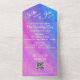 Sumérjase en la perfecta transición del apasionado púrpura, juguetón rosa, azul sereno y agua refrescante. ¡Experimente la fascinante danza de las emociones a través de la interacción de los colores! ¡Todo esto en una sola invitación tiene todo lo que necesitas! Encontrará otros productos en nuestra colección para una fiesta temática de bodas, una fiesta de soltera y productos para fiestas nupciales.