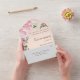 Invitación de evento trifoldar con respuesta floral de melocotón. Esta es una invitación elegante y encantadora con una tarjeta de respuesta con perforaciones que hará que sea fácil para sus invitados responder a su increíble celebración. Sus invitados pueden arrancar la tarjeta en la línea perforada, rellenar la información, sellarla y echarla en su buzón de salida. Los artículos coincidentes también están disponibles en nuestra tienda.