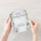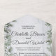Invite a sus amigos y familiares a celebrar su boda de invierno con estilo, con nuestras exquisitas invitaciones. Estas hermosas tarjetas de invitación todo en uno cuentan con un diseño de copos de nieve y bifurcaciones de pino, lo que les da un ambiente festivo perfecto para su gran día. Además, están impresas en papel de alta calidad que seguramente causará una impresión duradera.