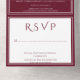 Elegante y sencillo Boda, todo ello en una sola invitación con un velo de lis sobre un fondo de vino. Este diseño es una elección única para un boda moderno. Fácil de personalizar con los detalles de su boda. Haga clic en "Personalizar" para encontrar más opciones de personalización.