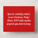 Invitación de fiesta de navidades Invitación a la Fiesta de Navidad Estilo: Todo en un solo Navidad Fiesta Invite Estilo: Invitación de Fiesta de Navidad Todo en Uno Las invitaciones personalizadas Todo en Uno son una combinación única de una invitación personalizado estampada con una tarjeta postal RSVP perforada y fácil de rasgar. ¡Y son tan fáciles de usar! Simplemente se pliega, después sella la solapa de atrás con los tres pegatinas claros incluidos y el correo. Y cuando sus invitados reciben la invitación de su personalizado, ¡simplemente sacan la tarjeta RSVP perforada y la envían de vuelta al correo! Dimensiones: 5,6 pulgadas x 4,5 pulgadas plegadas, 5,6 pulgadas x 12,125 pulgadas desplegadas. Tarjeta postal RSVP perforada de 5,6 pulgadas x 4,25 pulgadas; tamaño postal USPS calificado. No se necesita ningún sobre para el envío - Sello y envío! Dos tarjetas de papel de alta calidad para elegir. Dos opciones de impresión disponibles: estándar y de alta definición. Incluye tres pegatinas redondos claros para sellar cerrados. Tipo de papel: Perla. Nuestro papel Perla Premium es importado de Italia y presenta un acabado suave y resplandeciente con un sutil brillo de colores tenues. Haz que tu próximo evento u ocasión especial resplandezca con este papel elegante y refulgente. Espesor de 16 pt / peso de 130 lb / 350 GSM. Acabado suave de color blanco y resplandeciente. Añade una elegante funda sutil. Certificada por la FSC (Forest Stewardship Council o Consejo de Administración Forestal). Papel importado de Italia; impreso en los Estados Unidos. Las invitaciones todo en uno personalizadas son una combinación única de una invitación personalizada bellamente empresa con una postal de confirmación de asistencia perforada a través de arrancar. ¡Y son tan fáciles de usar! Simplemente doble, luego selle la solapa trasera con las tres pegatinas・y incluidas por correo. ¡Y cuando sus reciban su invitación personalizada, simplemente arregcarán la tarjeta RVP perforada y se la entrega por correo! Dimensiones: 5,6 pulgadas x 4,5 pulgadas plegada, 5,6 pulgadas x 12,125 pulgadas despleg ada. RSVP perforada de 5,6 pulgadas x 4,25 pulgadas, fácil de separar; tamaño postal de USPS. No sé sobre el envío. ¡Selle y envíe! ¡Dos Cartulinas de papel de alta para elegir! Dos・de impresión: estándar y alta. Los tres pegatinas redondas・para sellar cerrado. Tipo de papel: perla. Importado de Italia, nuestro Premium Pearl presenta un papel fino y brillante con un brillo, sutil de de suaves. Resalte su próximo evento u especial con este papel elegante. Grosor de 16 pt/peso de 130 lb/350 GSM. Acabado recubierto de blanco. Añade un elegante sutil. FSC certificado. Papel importado de Italia; impreso en los EE.UU.