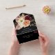 Elegante y monótono, esta invitación a la boda todo en uno presenta un rico fondo negro con románticas flores de acuarela en burdeos, melocotón y marfil. El diseño incluye una desconexión RSVP y un formato listo para sobres, lo que lo convierte en una elección elegante y conveniente para las bodas de otoño modernas. Personalízalo con tu foto, sitio web y detalles de RSVP.