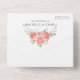 Una invitación todo en uno con un tema floral rosado es una invitación de boda muy bien diseñada y conveniente que combina todos los detalles esenciales en un formato único, plegable o compacto. Con elegantes flores rosadas, este estilo exubera romanticismo, encanto y sofisticación. Los elementos florales crean una estética delicada y suave, perfecta para bodas de temática romántica, vintage o jardín. Con un diseño todo en uno, esta invitación típicamente incluye: detalles del Boda (fecha, hora, lugar) sección RSVP (a menudo desmontable) Este tipo de invitación es práctico y elegante, reduciendo el desorden del papel y manteniendo todos los detalles necesarios del boda muy bien organizados en un solo lugar.