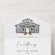 Un único ilustracion de granero de moda en otoño con luces amarillas y calabazas naranjas. Se trata de un elegante diseño rústico con caligrafía moderna y fuentes. Esta invitación tiene información sobre la ceremonia y la recepción, la tarjeta rsvp es desmontable.