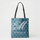 Una bolsa de asas verde azulada elegante con su nombre e iniciales en un fondo del modelo de anclas azules