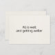 Esta tarjeta de afirmación contiene una simple cita positiva: "Todo está bien y se está volviendo más soleado". Puede editar este texto y agregar cualquier frase que desee. Edite una tarjeta, añada al carrito y edite de nuevo para crear una baraja de tarjetas inspiradoras. En el fondo hay una sutil foto de textura de papel - que puedes reemplazar con una foto de tu elección. Esta es una gran herramienta para mejorar tu enfoque espiritual - meditar en la frase, o ponerla alrededor de tu casa y que te recuerden a diario el propósito de tu alma. ・・ Para más material de papelería espiritual, visite mi tienda Zazzle.com/In_The_Vortex