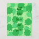 Pintura de un collage de shamrock, cuatro tréboles de hojas, en varios tonos de verde, con el mensaje, todo lo mejor para ti, impreso en postales. Se puede personalizar con un mensaje diferente, y/o tipo de letra.