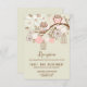 Tarjeta de inclusión divertida y caprichosa que presenta búhos rosados y marrones, flores y jaulas para pájaros. Esta es parte de un conjunto de boda. Están disponibles artículos coincidentes y otros colores.