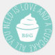 Todo lo que necesitas es amor y un pegatina boda de quequitos. Diseño de etiquetas con lema personalizado e iniciales. Pegatinas redondos personalizados con su monograma. Práctico para favores, dulces y regalos. Selladores personalizados para favores de boda. Color azul verde azulado o personalizado con icono de pastel de taza.