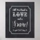 TODO LO QUE NECESITAS ES AMOR Y UN S'MORE señal con un diseño de estilo pizarra en blanco y negro. Perfecto para tu ducha o boda.