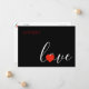 Esta es una tarjeta de felicitación al estilo postal. Diseño con tipo; esta tarjeta tiene fondo negro. En la esquina inferior derecha, la palabra "amor" en un texto de escritura blanca. Hay un corazón rojo donde está el "o". En la esquina superior izquierda están las palabras "TODO LO QUE NECESITAS ES". También hay líneas reguladas para la dirección de correo. Si no desea utilizar esta tarjeta como postal, puede eliminar las líneas gobernadas y utilizar esta tarjeta con un sobre.