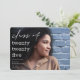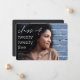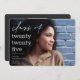 La invitación de fotos de graduación moderna presenta una foto horizontal o orientada al paisaje en la parte delantera, con "Clase de 2022" colocada a la izquierda con letras blancas. El nombre y la escuela de tu graduado aparecen debajo. Añade un mensaje personal a la parte posterior, junto con una foto adicional.