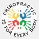 Impresiones coloridas a mano con un texto rodeado que dice: CHIROPRACTICA ES PARA TODOS LOS CUERPOS.