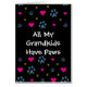 Todos mis nietos (nietos) tienen abuelas de garras y abuelos de perros y gatos y otros mascotas amarán —y encontrarán humor— este producto único de la clase "Todos mis nietos tienen patas" que presenta un colorido patrón de corazones y huellas de garras. Los abuelos cuyos nietos son peludos y tienen patas lo encontrarán gracioso y sentimental. Hace un regalo único en cualquier día o en ocasiones especiales y muestra que entiende lo especial que es para alguien el acompañamiento canino o felino. Personalizar o Personalización del diseño Compra este elemento como es o personalizar el texto con un tipo de letra, color o tamaño diferente, o agrega una imagen.