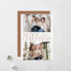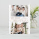 Tarjeta fotográfica navideña moderna con "Feliz Navidad" en el centro del diseño con letras modernas de color toffee y fondo blanco. Personalice la tarjeta de Navidades simples con su nombre de familia y 2 fotos horizontales. La tarjeta se invierte para mostrar un fondo toffee-marrón con puntos blancos sutiles (nieve).