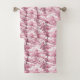Precioso patrón de toile rosa en estilo francés en este juego de toallas de baño. El juego incluye toalla de baño, paño de lavado y toalla de mano.