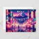 Aquí está la vintage postal de viaje que presenta Tokio con luces de neón y el Monte Fuji. una silueta en el horizonte y una audaz tipografía al estilo de los años 50. 🌆 Los tonos de la puesta de sol y el efecto descolorido y soleado le dan un ambiente nostálgico y retro.
