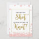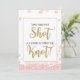 Esta moderna señal de fiesta de despedida de soltera floral "Toma Otro Disparo Ella Está Anudando" presenta un fondo floral rosa con salpicaduras de brillo dorado, personalizado con el nombre de la novia. El texto está escrito en una mezcla de una fuente de caligrafía juguetona y una fuente sans moderna.