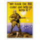 Poster australiano de la Primera Guerra Mundial por Harry T. Weston, 1915, que representaba a un soldado en una colina sobre una batalla naval, probablemente haciendo referencia a la Batalla de Galípoli donde se perdieron muchas vidas australianas.