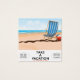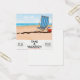Tome una Vacación "Su más rápido por tren" poster de vacaciones de playa de estilo vintage de una tumbona de rayas vintage y bola de playa en una playa de arena caliente cerca del océano.
