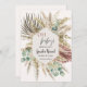 ¡Celebra tu pequeña con esta invitación revelada de pasto boho pampas! La hierba de pampas y un delicado marco dorado combinado con la vegetación eucaliptos y las flores secas crean un estilo rústico y sofisticado, perfecto para su revelación de género. El esquema de color neutro de beige, oro, blanco y óxido ayuda a hacer de esto una invitación ideal para fiestas y revelaciones neutrales de género. La combinación de texto cursivo y tradicional une el aspecto de un estilo único y vintage.